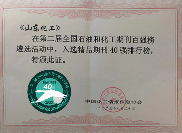 《山東化工》入選精品期刊40強